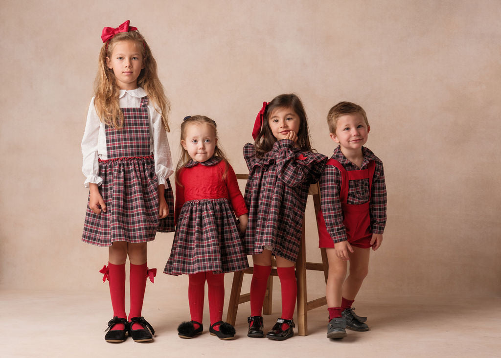 Vestido de manga larga en viyela de cuadros negro y rojo. Detalle de moño rojo en el cuello. Forro 100% algodón.